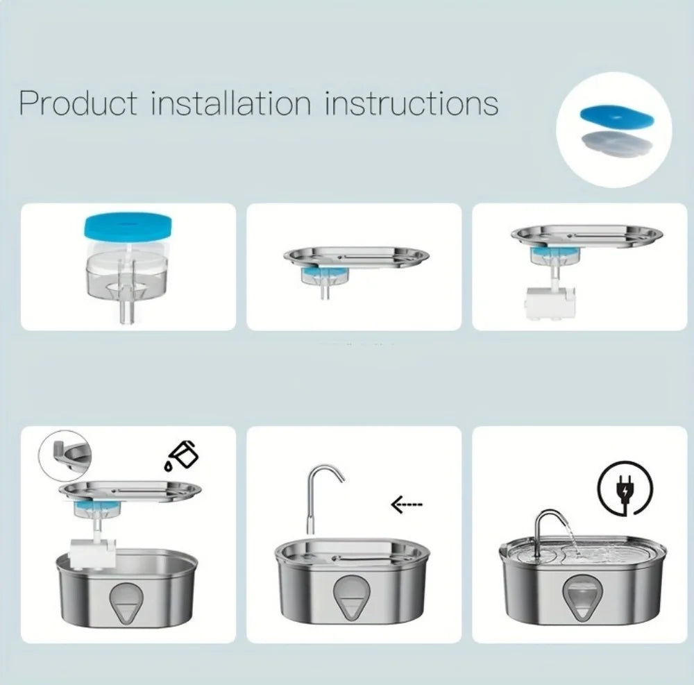 Keep your furry friend healthy and hydrated with this 3.5L large capacity stainless steel pet water fountain. Designed especially for cats but also suitable for small dogs, this automatic water dispenser combines functionality with style.