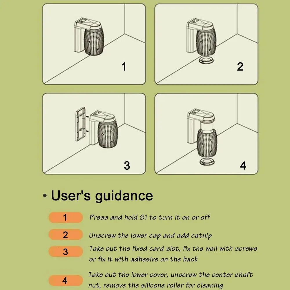 2. Special Holiday Toy: two ways of use, wall-mounted and hand-held, interactive catnip cat toy, easy to clean, roller is detachable.