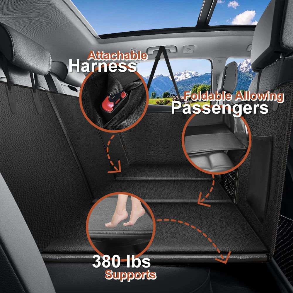 Waterproof Back Seat Extender for Dogs – PU Leather Car Seat Cover with Hard Bottom | Anti-Scratch, Universal Fit Dog Travel Mat
