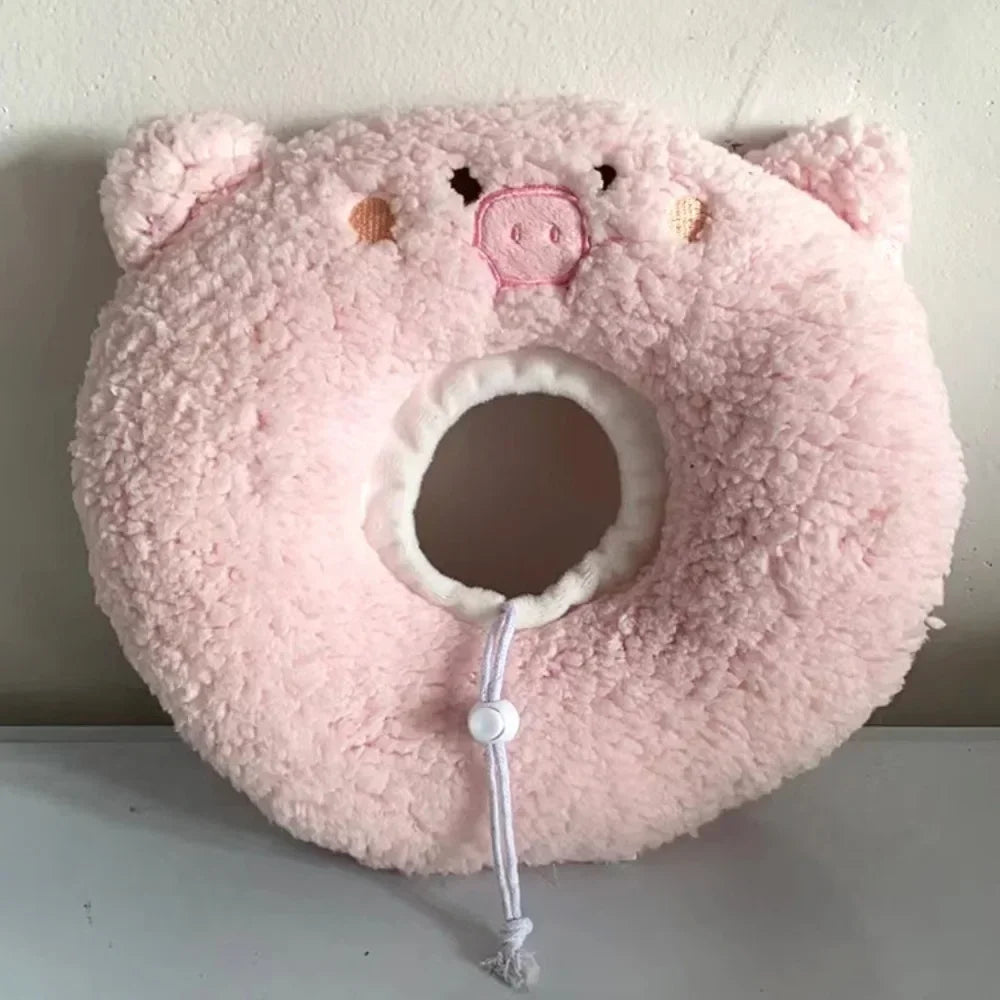 1 Pc Cute Cartoon Cat Recovery Collar – Soft Plush Adjustable Elizabeth Cone for Cats & Small Dogs | Anti-Bite Protective Neck Collar for Post-Surgery Wound Healing